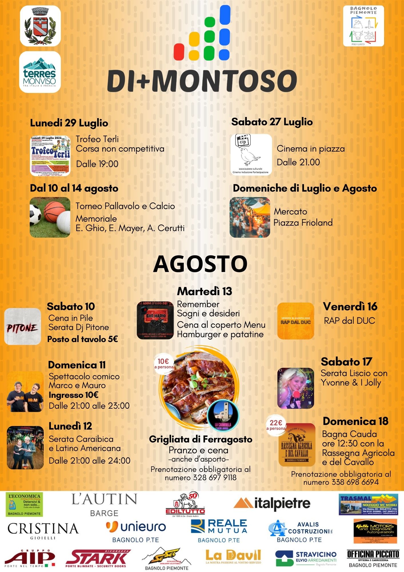 Vi invitiamo a partecipare alle attività estive proposte dalla Proloco di Bagnolo Piemonte nella località di Montoso.